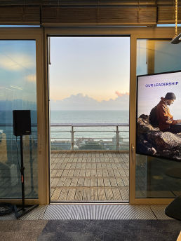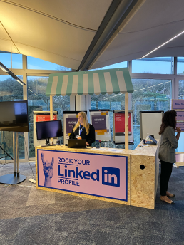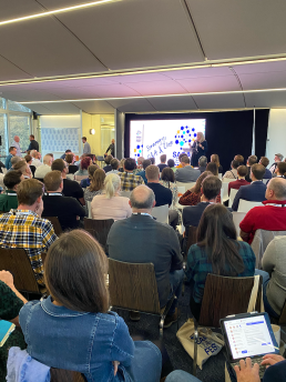 We also provided AV support (large format screen / PA / Sound Engineers for two floors), branded voting paddles, OSB way-finders, staging and drapes and a bespoke lanyard and sticker system for staff to collect throughout the day.