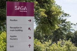 As part of our work with Saga, we were responsible for designing, fabricating, and installing the large format steel signage on all of the Kent sites (Folkestone, Sandgate, Thanet, and Hastings).